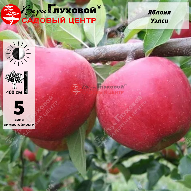 Описание Яблоня Уэлси. Это сильнорослое дерево с высокой разветвленной кроной. Имеет плоды средней величины (около 100-150 г), шаровидные, слаборебристые. Основная окраска в фазе съемной зрелости желтовато-зеленая, в фазе потребительской зрелости золотистого оттенка. Мякоть белая или зеленоватая, иногда с красными прожилками, кисло-сладкого хорошего вкуса с тонким ароматом. Плодоносить яблоня начинает спустя 3-4 года после посадки. Сбор урожая - в конце июля-начале августа. Хранятся плоды около 20 дней. Особенность сорта - периодичность плодоношения. Сорт неприхотлив к условиям выращивания, высокозимостоек, устойчив к парше.