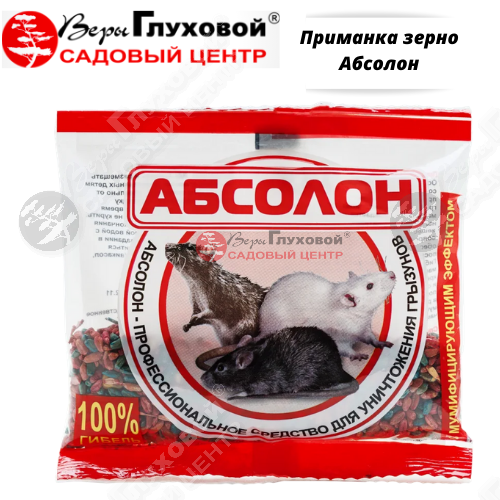 АБСОЛОН зерно 100 кг. – готовая приманка отечественного производителя в виде зерна. Разработана для профессионального использования в целях проведения мероприятий по дератизации персоналом организаций, занимающимся дезинфекционной деятельностью, и населением в быту. В своём составе имеет горький компонент, отпугивающий птиц и домашних животных. Препарат особенно эффективен при борьбе с мышами, которые погибают от однократного поедания приманки. Гибель вредителей наступает в течение 4-12 дней после употребления гранул в пищу. Препарат относится к малотоксичным веществам IV класса токсичности.